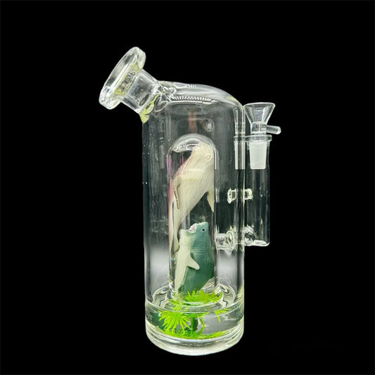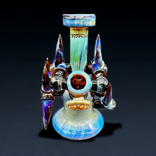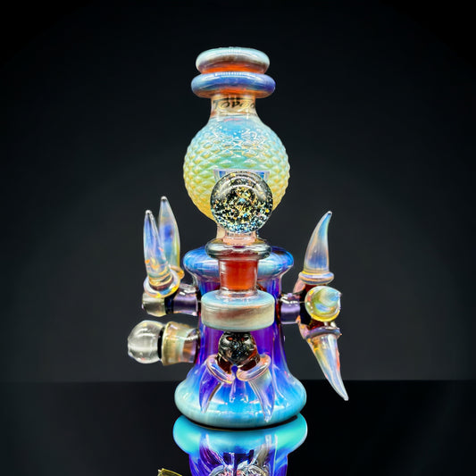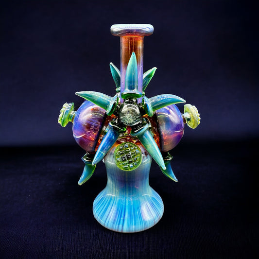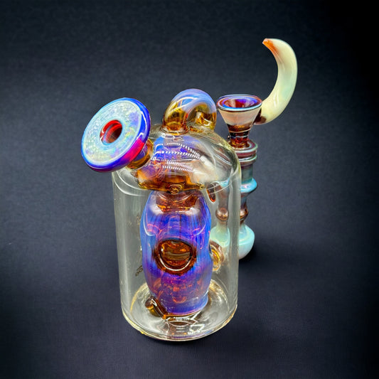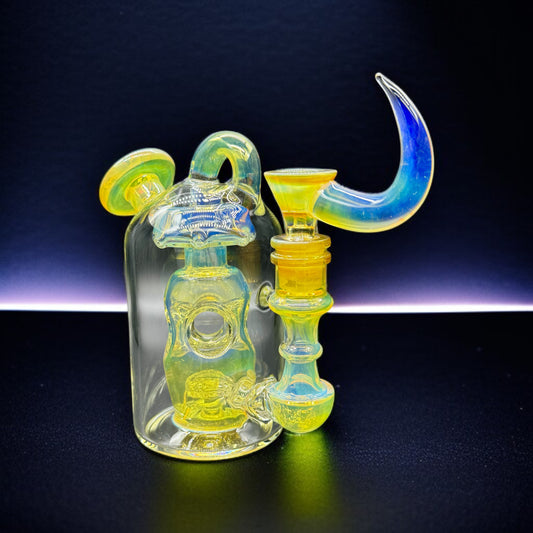 6” UV Reactive Glass Recycler Bong with Rhino Horn Bowl