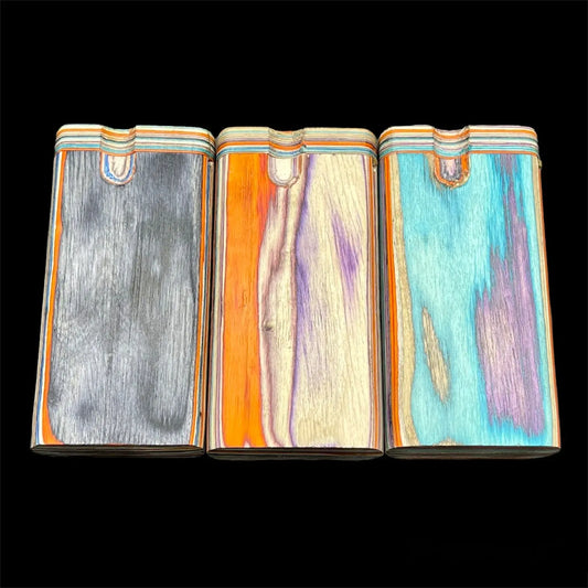 Rainbow Wooden Dugout with One Hitter Pipe and Metal Poker 3''