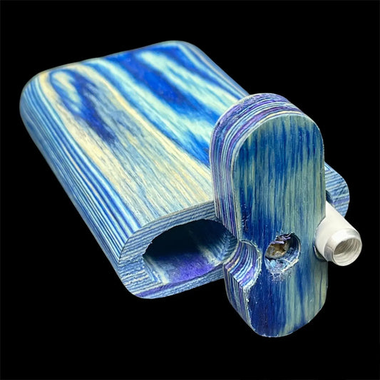 Blue Wooden Dugout with One Hitter Pipe and Metal Poker 4''