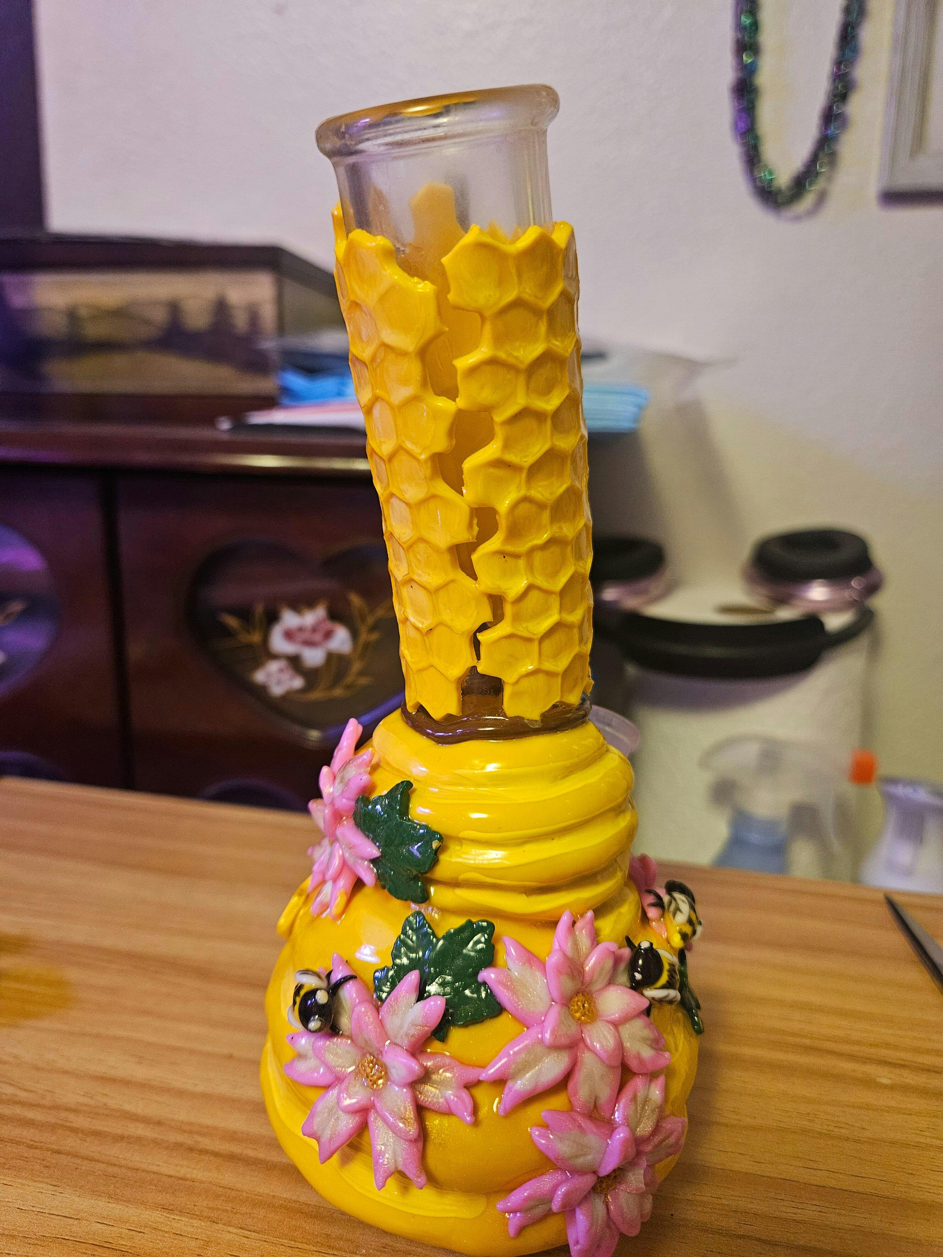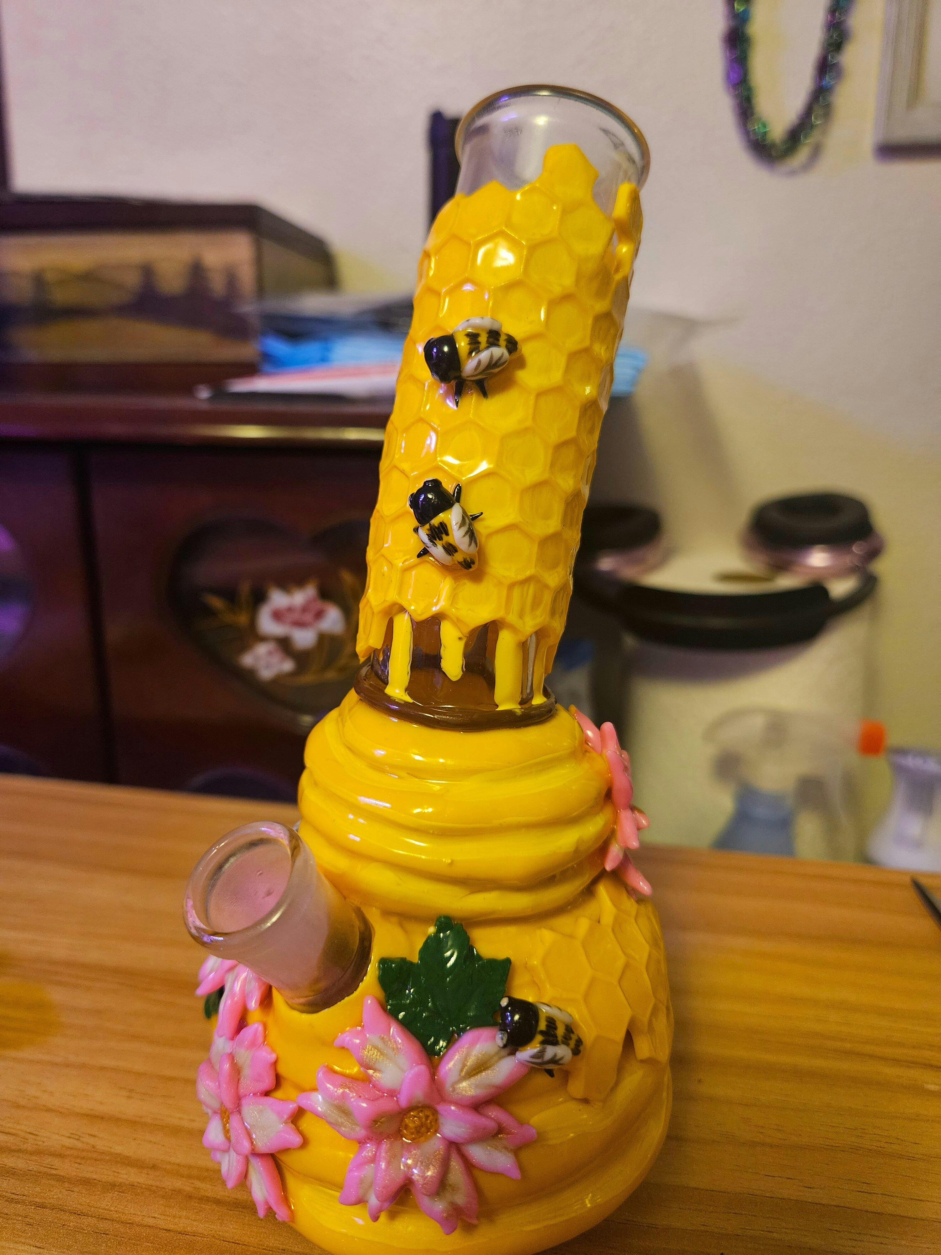 - Unique 3D Design: The 3D bees and flowers decoration brings a whimsical touch to the bong, making it as eye-catching as it is functional. A perfect blend of art and utility for any collector.