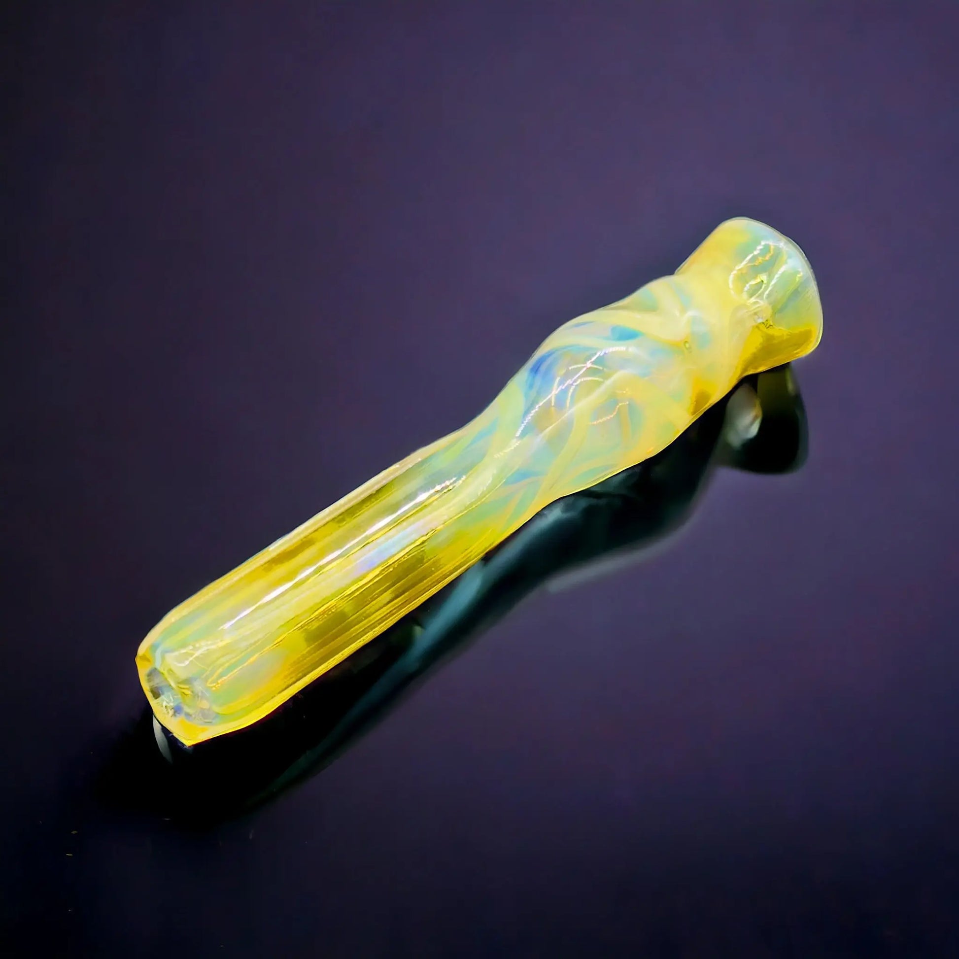 The Golden Fumed Chillum Glass Pipe is a beautifully handcrafted smoking device made from high-quality borosilicate glass. Its unique golden fumed design gives it an elegant and luxurious appearance. This chillum pipe is perfect for a quick and efficient smoking experience, allowing you to enjoy your favorite legal herbs or tobacco. Its compact size makes it portable and convenient to use on the go.